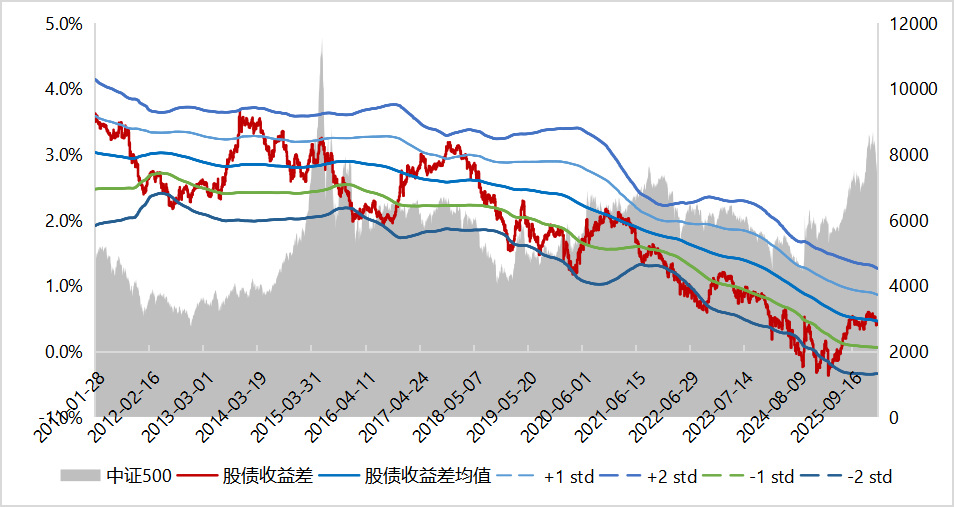 ▼中證500股債收益差