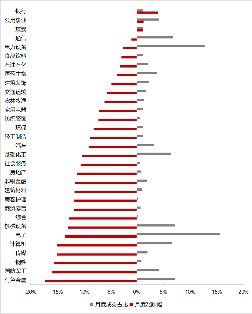▼行業(yè)漲跌幅及成交占比